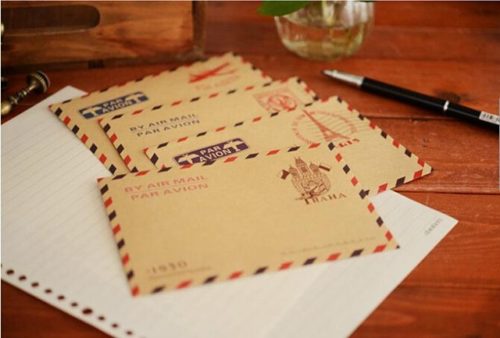 Para completar las postales utilizamos sellos del mundo y sobres vintage que encontramos a buen precio en AliexpressSellos del mundo y Sobres Vintage