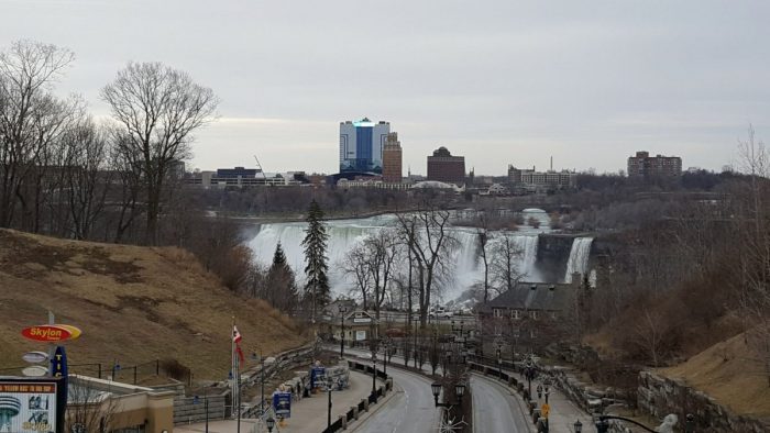 La parada del autobús se encontraba en el pueblo de Niagara Falls, para llegar a las Cataratas había un paseito de unos 30 minutos. Tenías la opción de coger un autobús de línea con un pase para cogerlo todas las veces que se quisiera en un día. Finalmente decidimos darnos un paseo y descubrir la zona a pie, valió la pena ya que el paseo no nos fue pesado.