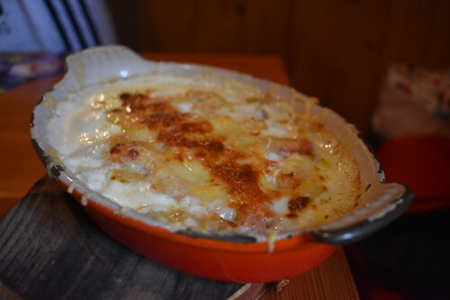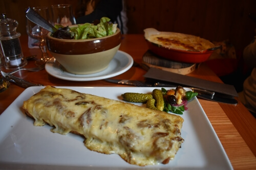 No te puedes ir de los Alpes Franceses sin probar una auténtica founde acompañada de patatas y embutido de la zona. Nosotros la probamos en el restaurante La Caleche en el centro de Chamonix y nos encantó por su bonita decoración tan acogedora, más caro que la Cremerie du Glacier, pero un buen servicio y buena comida.