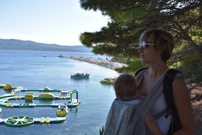 ¿Merece la pena visitar la playa del Cuerno de Oro? Tiene unas aguas cristalinas y un color azul increíble, pero es una playa masificada y muy turística… Es de piedrecitas y es complicado andar por ella si no llevas unos escarpines (como en la mayoría de las playas croatas).