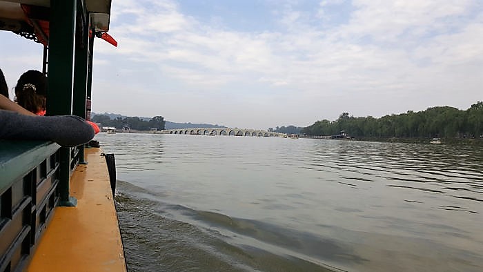 Durante el tour nos preguntaron si queríamos pagar un extra por ir en el Dragon Boat hasta el Palacio de Verano y navegar por su lago Kunming, todos aceptaron ese modo de ir, pagando 120 yuanes extras por persona (16€). Nosotros también lo aceptamos ya que a nuestra pequeña le encanta viajar en barco. Si no se acepta este extra supongo que te llevan con el minibus hasta el Palacio.