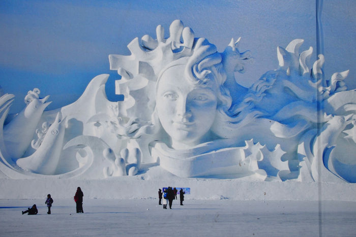 Pero realmente lo que más nos sorprendió en el Palacio de Verano, a parte de la gran acogida que tuvieron los chinos con nuestra pequeña artista, fue descubrir unas fotos de cómo se transforma el Palacio de Verano al llegar el frío invierno. Nos impactó muchísimo ver las grandes recreaciones cuando llega la nieve y se convierte el lago en una gran pista de patinaje. ¿A vosotros no os parece impresionante?