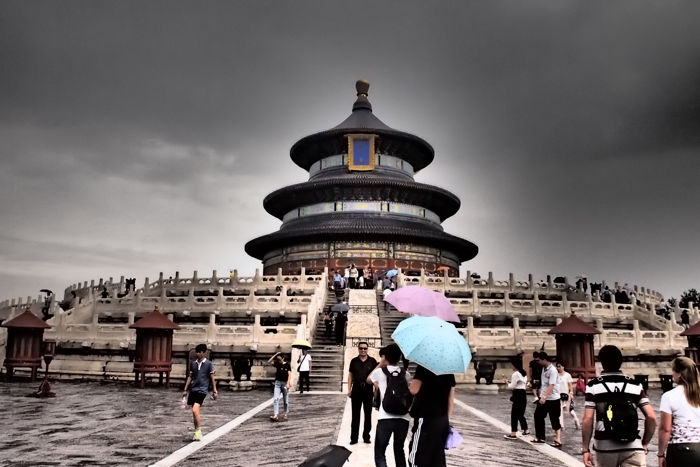 Terminando nuestra visita del Templo del Cielo se volvió de nuevo el cielo gris y tuvimos que salir corriendo para no mojarnos.