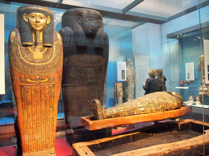 El Museo Británico (British Museum) abarca campos como la historia, la arqueología, la etnografía y el arte. Su sección sobre Egipto y sus momias es la más importante del mundo después de la del Museo Egipcio de El Cairo. Dirección: Great Russell Street, Londres WC1B 3DG. Horario de apertura del museo: Sábados a jueves 10:00 – 17:30, viernes 10:00 – 20:30.