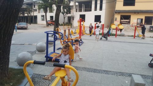 Fue muy divertido descubrir donde jugaban los niños de la zona. Justo en la puerta del hotel habían las típicas máquinas para hacer ejercicio que encuentras en muchos parques y playas de España, era para los niños su parque y nuestra niña también lo disfrutó. Paseando por los edificios de detrás del hotel encontramos un verdadero parque infantil pero se encontraba abandonado y le rodeaba mucha basura, una pena que se encontrara en ese estado….