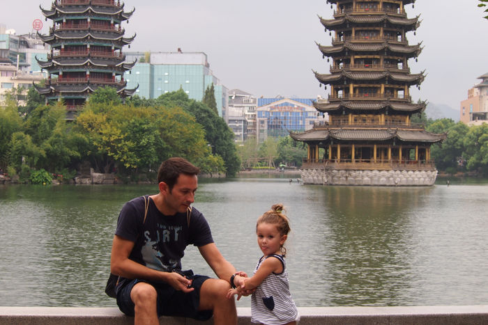 guilin con niños1 150x150 - Descubriendo Guilin y el río Li con bebéNosotros nos conformamos con verlas y fotografiarlas desde fuera ya que las fotos más bonitas del lago Shanzu es plasmando las pagodas en ellas.