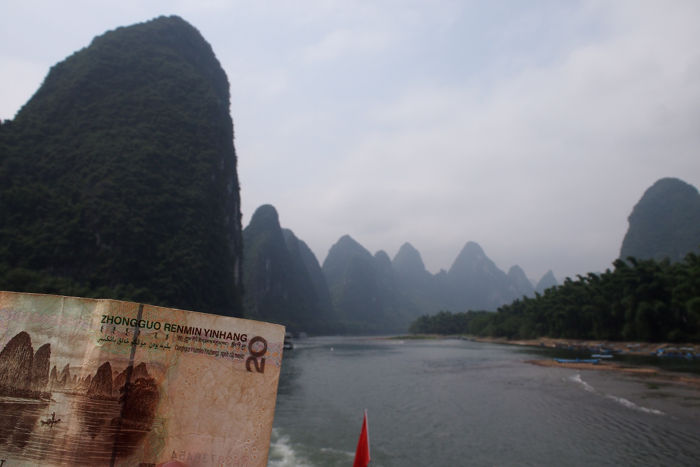 ¿Sabéis qué en este río se encuentran las montañas de los billetes de 20 Yuanes? Sobre las 12 del medio día navega entre ellas pero no las verás mirando hacia delate, sino que las observarás una vez las hayas pasado, mirando hacia atrás…