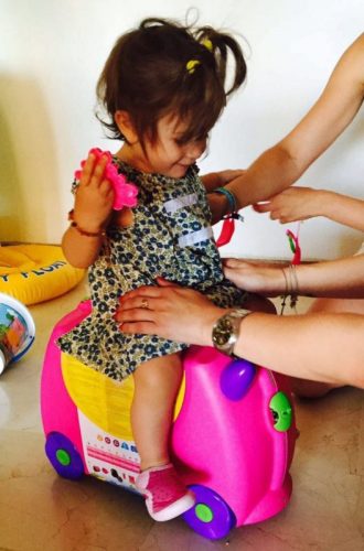 Y por último necesitas una maleta para llevar sus cosas y la que más les gusta es la Trunki. Es muy divertida ya que se pueden subir en ella y es también un correpasillos.