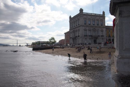 - Nuestra primera parada fue visitar la Plaza del Comercio y su pequeña playa a orillas del río Tajo.