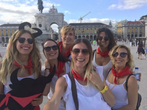 Y os preguntaréis qué hacíamos vestidas de San Fermines en Lisboa… Era parte de la temática de la despedida de soltera de mi amiga, le hicimos creer que se iba a Pamplona, le tapamos los ojos y no descubrió su destino hasta que aterrizamos en el aeropuerto…