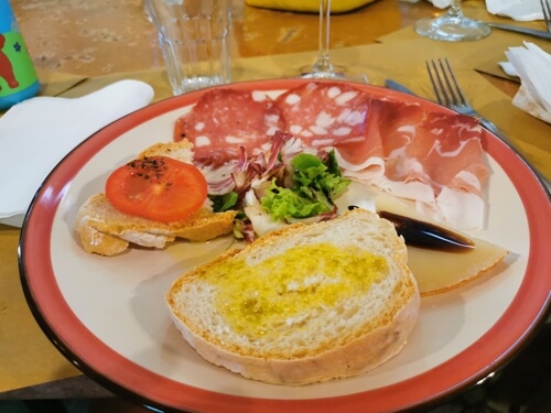Después del sofoco y el mal rato que pasamos en San Gimignano, el bus nos llevó a una bodega con una larga tradición familiar en el corazón de la Toscana, en Chianti. Nos sorprendió mucho el almuerzo tradicional elaborado con productos frescos procedentes de la huerta y productos caseros: pasta fresca casera y embutidos curados, ensalada y queso típico de la zona. Todo ello acompañado con diferentes vinos de la región, como Vernaccia de San Gimignano, Chianti y Vin Santo (vino dulce).