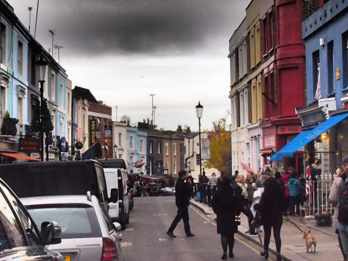 No nos podíamos ir de Londres sin ver el conocido barrio de Notting Hill y su mercado de Portobello. El mejor día para visitarlo son los sábados, pero era viernes y había que intentarlo, aunque no se encontraba en su máximo apogeo, las tiendas se encontraban abiertas y habían algunos puestos en sus calles.