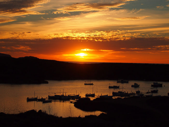 - Mi puesta de sol preferida fue desde el faro de Cavallería. No hace falta llegar hasta el faro, justo ates de llegar hay una pequeña playa con barquitos que hace que las fotos parezcan las de una postal. Además cuando en el sur sopla la tramuntana, el norte está mucho más tranquilo.