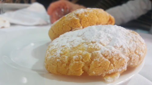 Y terminamos la degustación con postres de la casa, toñas pinoseras rellenas con cremoso de crema pastelera un final para deleitar a los más dulceros. Pero no pueden faltar las pastas más típicas de la zona para el café, las Perusas, acompañadas con una Mistela.
