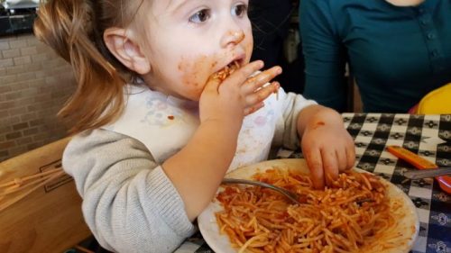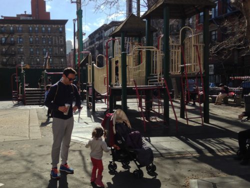 Muy cerca cogimos el metro para cruzar a Manhattan y visitar Little Italy. Tras perdernos un poco por la zona llegamos hasta Little Italy y entramos a comer al restaurante italiano Pomodoro. Dónde nuestra pequeña disfrutó de su plato preferido «los spaghettis» sentada en una trona y encima tuvo la suerte de tener un parque justo en frente para rematar su momento de felicidad. El restaurante Pomodoro estaba bien calidad-precio (casi 35$ con las propinas y pedimos una cerveza) y el parque no nos gustó ya que había mucha gente mayor sentada en los columpios mientras se comían sus pizzas o comida para llevar.