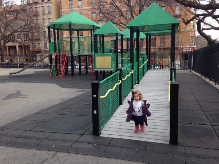 Primera parada en el barrio de Harlem para conocer un poco de su historia y ver sus casas típicas. Junto a la parada encontramos un parque que la peque tuvo que probar. ¿Qué parque de Nueva York no ha visitado esta bebé? Aquí puedes descubrir todos los parques infantiles de Nueva York