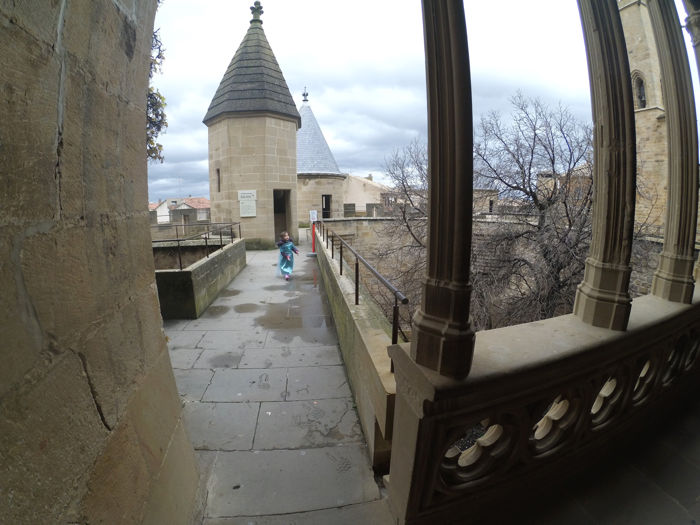 Si nuestra hija ya se emocionaba cruzando los pasillos, subiendo las escaleras que ascienden a las torres y viendo las vistas. También disfrutó de los increíbles patios y jardines como el Patio de la Pajarera donde el rey mantenía sus pájaros exóticos y el Patio de la Morera que alberga una morera de más de 300 años que es Monumento Natural de Navarra.
