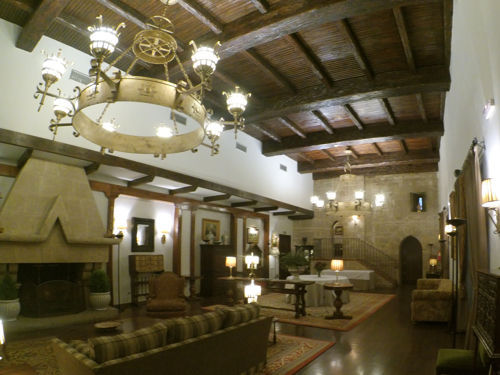Nuestra pequeña siguió disfrutando su día de princesas con su vestido de Frozen mientras recorría los pasillos del Parador, y visitaba la sala común, con sus muebles antiguos y bonitos tapices que te trasladan a otra época .