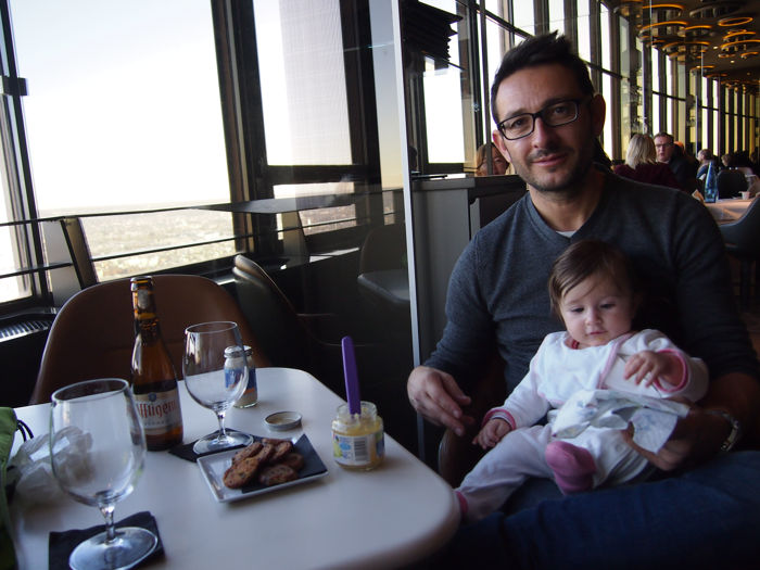 Para continuar el día fuimos a la torre de Montparnasse. Habíamos comprado anticipadamente las entradas para subir a ver las vistas por 19€ cada una y sinceramente hicimos los tontos ya que en el piso de abajo se encuentra el restaurante La ciel de Paris donde se puede tomar una cerveza o un café con unas vistas increíbles (también se puede comer aunque ya es un poco menos asequible). Las cervezas nos costaron a 10€ acompañadas con unas galletas de queso de cortesía, merecieron la pena ya que aprovechamos para darle de comer a la pequeña y cambiarla (aunque me pareció muy mal que en un sitio tan elegante no tuvieran cambiadores). Un buen lugar al que acudir durante tu visita a París con bebé