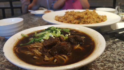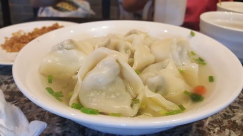 Era la hora de comer y nuestra guía de China (la guía verde de Michelin) nos recomendaba en la zona el restaurante Kong Yi Ji junto al lago Hohuai con cocina de Shaoxing, comimos por 120 yuanes un buen arroz, sopa de wantungs y tallarines, todo delicioso.