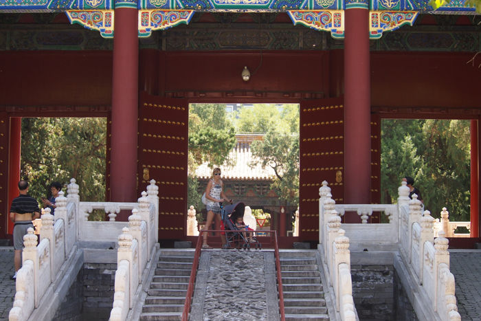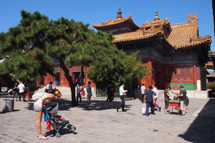 Muy cerca bordeando las tiendas de recuerdos se llega hasta el Templo de Confucio construido en el año 1302, su entrada cuesta 30 Yuanes. Este templo lo intentamos ver algo más deprisa ya que la peque estaba ya un poco cansada, de todas formas nos llamó mas la atención el anterior, Lama Temple.