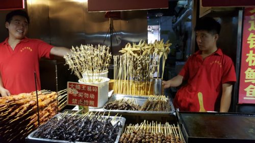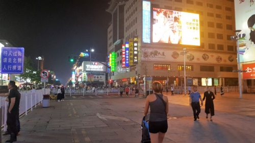 ¿Y después de cenar? Nos habíamos hinchado a comer así que había que bajar la cena y nos fuimos andando a la famosa calle Wangfujing y su mercado nocturno, dónde igual te hacen una brocheta de pollo que te hacen una de escarabajos, es un lugar muy conocido para probar cualquier insecto. ¿Te atreverías?