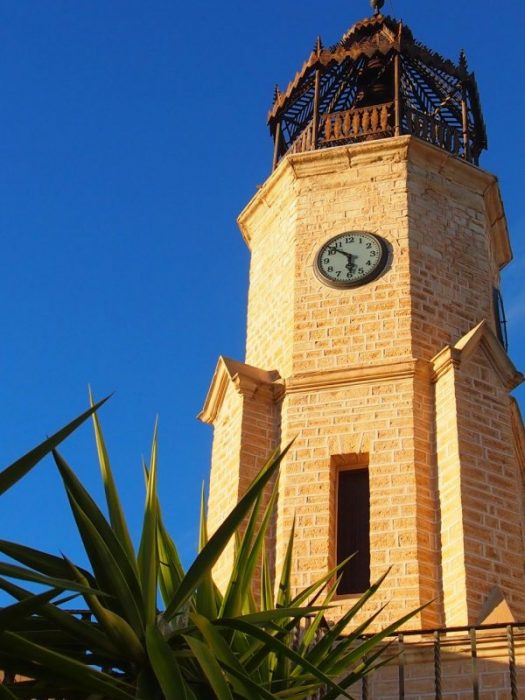 Continuamos conociendo más patrimonio del pueblo y le toca el turno a su Torre del Reloj que fue construida en 1900 para albergar el reloj de Casenco de 1889, su gran peculiaridad es que se sigue manteniendo su sistema de funcionamiento original ya que diariamente se le da cuerda remontando sus pesas manualmente. Poder estar dentro de la torre cuando suenan las campanadas y ver las vistas desde arriba fue un auténtico privilegio. Se organizan visitas guiadas a su interior previa cita a la Tourist Info Pinoso.