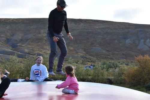 - Muy cerca, continuando la carretera 518, hay un complejo llamado Húsafell con columpios y una divertida zona de saltar. Además hay una piscina termal cuya entrada cuesta 10€. En esta zona es donde parten los tours para visitar las cuevas de hielo.