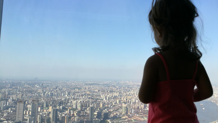 - Y para acabar la tarde no hay nada como disfrutar las vistas de Shanghái a más de 630 metros del suelo en Shanghai Tower, la torre más alta de Shanghái y la segunda más alta del mundo, su precio es de 360 Yuanes (25€). Pasamos un rato muy divertido admirando las vistas y nuestra bebé jugando con otros niños que se encontraban allí, hasta conoció a su amiguita chilena con la que pasó disfrutó al día siguiente de Shanghai Disneyland.