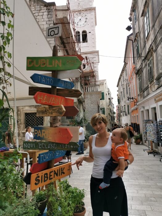 - Tomarte un buen helado, perderte por las calles de Sibenik y subir las callejuelas hasta el castillo es la mejor forma de descubrir esta ciudad croata. Te recomendamos no visitarla con carrito de bebé por las cuestas, nosotros íbamos con la mochila portabebés. Un portabebés toddler y una silla ligera para viajar con dos bebés