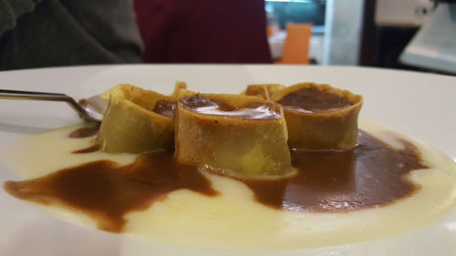 Sus ricos entrantes mezclando la innovación con la tradición, donde destacan sus increíbles raviolis de manitas y su consomé de olleta morellana. Para plato principal no pudimos resistirnos a probar su arroz meloso de pulpo y el canelón de meloso de ternera, para finalizar con su mil hojas de crema de vainilla y un brownie. Todo acompañado con vino llamado Breca, un garnacha potente y sabroso perfecto para maridar está comida.