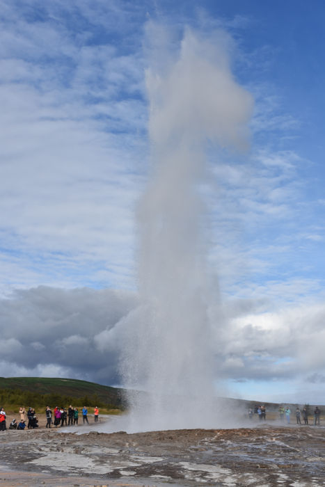 Es la siguiente parada en esta ruta, se encuentra a 50 minutos (60km) del Parque Thingvellir. Es el valle de Haukaladur y aquí encontramos el Geysir, que dio su nombre a todos los géisers del planeta, pero actualmente se encuentra dormido. La gran actividad la tiene a su hermano pequeño Stokkur, que emite una columna de agua y vapor ardiente cada 14 minutos alcanzando los 20 metros de altura. Entre ese tiempo es posible que escupa un par de veces pero con menos fuerza.