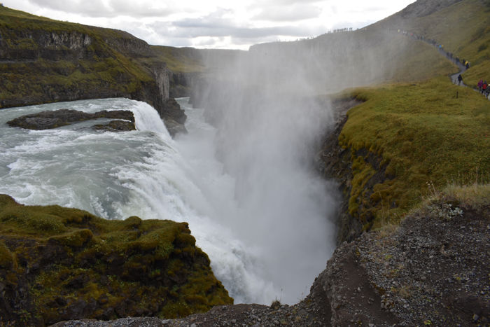 Gullfoss, la cascada dorada, es uno de los saltos de agua más impresionantes de Europa, por sus increíbles dimensiones y por las cantidades ingentes de agua que lleva su caudal. No es la más impresionante de Islandia, pero si la más famosa y visitada por encontrarse tan cerca de Reikiavik (a 110 kilómetros)