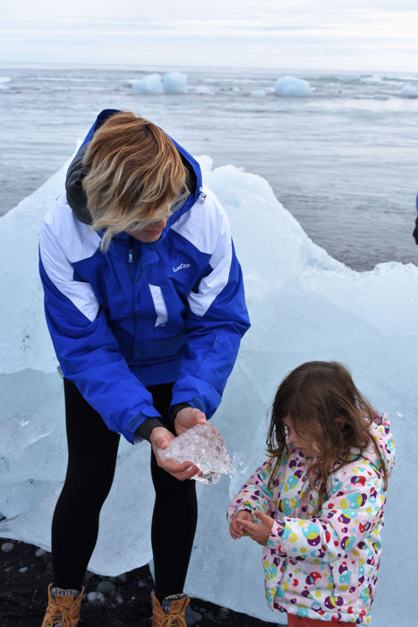 Pero sinceramente nosotros preferimos ahorrarnos ese dinero y acercarnos a la playa donde desembocan los icebergs y tocarlos con nuestras propias manos. Al cruzar el puente por debajo llegas a Diamond Beach donde podrás hacerte fotos con ellos y tocarlos, una experiencia muy emocionante para un niño. Nuestra pequeña se sentía en el Reino de Frozen y buscaba a Elsa.