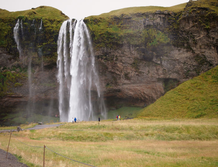 Un espectacular salto de agua de 60 metros acompañado de un paraje de gran belleza, así es la cascada de Seljaladsfoss. Pero lo que la hace especial y única es que la puedes rodear completamente. Hay un caminito muy resbaladizo que sale por la derecha de la cascada y te conduce a su zona de atrás, es imprescindible llevar chubasquero o acabarás completamente calado, también es recomendable una cámara con protección para el agua si quieres sacar fotos del gran manto de agua.