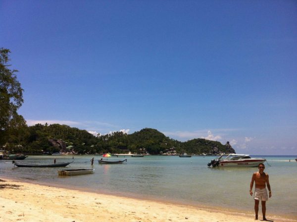 Llegamos a Ko Tao en 2 horas y  cogimos un taxi hasta Chalok Baab Kao con otra pareja por 300bahts/7€. Buscando alojamiento al final nos metimos en un zulo por 500bahts/12€ en el Sunshine Resort, dejamos las cosas y fuimos a buscar nuestros amigos que estaban en esa playa alojados haciendo el PADI de Buceo en AHIASIA con el Brujo (son 4 días y cuesta 200€ con el alojamiento incluido).