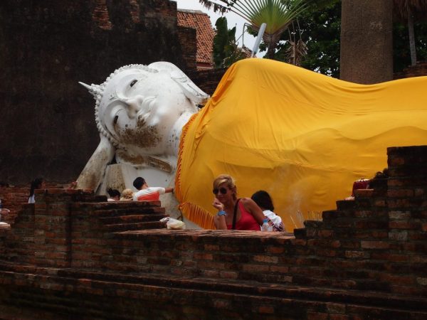 img 2689 1 150x150 - Tailandia en 17 días: Itinerario de un gran viaje solosAl llegar a Bangkok cogimos taxi al Gran Palacio, justo cuando bajamos del taxi se nos acerco un hombre que decía que estaba cerrado y también los templos de alrededor, nos hizo una ruta de cinco templos que podíamos visitar y habló con un Tuk Tuk para que nos enseñara los templos por 40bahts (1€!) entre los 4. Nos enseñó varios templos y el Wat Sraket (la montaña dorada) pero nos llevó  a 2 oficinas de información turística, nos confesó el hombre que por llevar a los turistas a que se informen sobre precios de viajes le daban 5 litros de gasolina, asique le hicimos el favor, al terminar la ruta le dimos de propina otros 40bahts ya que había estado con nosotros mas de 2 horas y se portó muy bien.