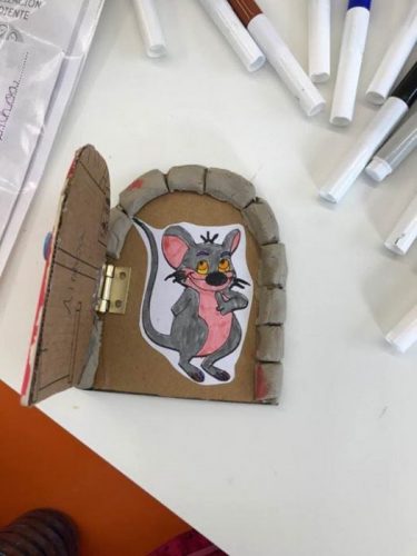Y nuestro taller favorito al que hemos tenido el honor de acudir, el taller infantil del Ratoncito Pérez, dónde mi pequeña conoció por primera vez a este personaje tan importante para los niños a través de la narración del cuento del Ratoncito Pérez, también se convirtió en un ratoncito cuando le pintaron la cara y le hice sus orejitas y se pudo llevar para su habitación la puerta del Ratoncito Pérez que fabricamos nosotras mismas (en mi caso más bien la hice yo mientras ella se dedicaba a jugar con las mesas de luz y el resto de niños). Un taller muy recomendable y divertido para hacer en familia.