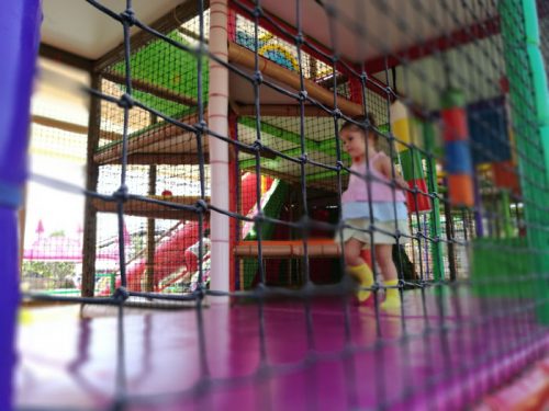 Hay una zona destinada a niños pequeños con colchonetas, toboganes y laberintos para corretear. No hay edad establecida, pero se recomienda a partir de los 3 años. No hay monitoras para ayudarles ni tampoco dejan entrar a los padres así que pueden agobiarse por no saber por donde ir o por donde tirarse. Si va el bebé con algún niño más mayor se lo pasará bomba correteando entre los túneles, pero solo es más complicado.