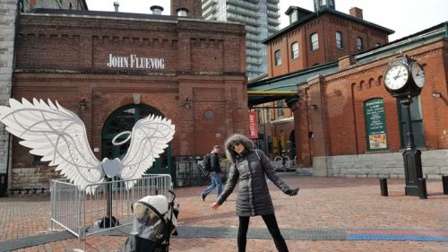 Continuamos paseando en el tranvía hasta la zona de Distillery District, uno de los lugares turísticos que muestra una cara diferente de la ciudad. Antiguamente era la distilería de whisky más grande del mundo en 1860 y ahora es una zona muy animada de estilo vintage transformada en restaurantes, cafés, galerías de arte y tiendas. Cuando la visitamos no se encontraba muy animada, supongo que al ser entre semana y por el frío, pero en verano y los fines de semana es de las zonas más animadas de la ciudad.