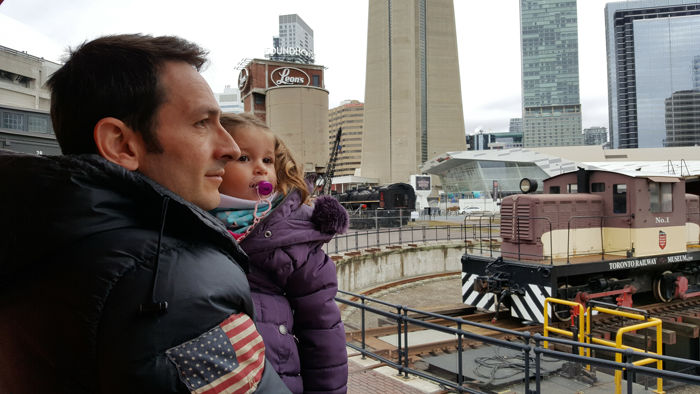 Muy cerca de Harbourfront se encuentra el Rogers Centre, un gran estadio multiusos que fue el primero en poseer techo retráctil y un hotel. También en la zona se encuentra Toronto Railway Museum, un curioso museo de ferrocarril que expone gratis trenes y vagones de época, dentro pagando una entrada de 6 CAD puedes ver la historia del ferrocarril Transcanadiense, jugar con un simulador de tren o que los niños se entretengan jugando con trenecitos de madera. Un buen lugar para escapar del frío y que nuestra pequeña se divirtiera un rato.