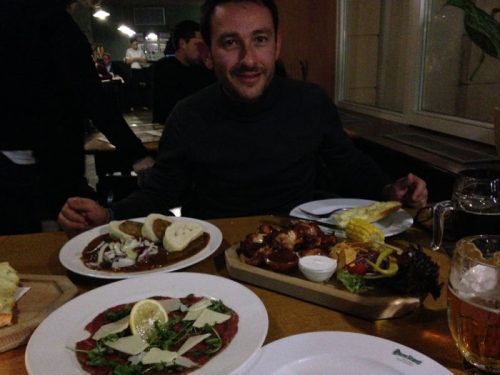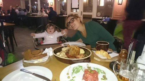 Comparado con otras capitales europeas, Praga es mucho mas barata y en lo que mas se nota es en la comida, las raciones son muy abundantes y está todo riquísimo. Hay que evitar los sitios turísticos y buscar restaurantes de comida local, nosotros descubrimos por casualidad el restaurante Kolkovna Savarin (en calle Na Prikope, donde el McDonald’s hay un pasaje que va al Museo del Comunismo y a un Casino, allí encontramos el restaurante). Es de esos lugares que al entrar ya sabes que vas a disfrutar ya que no ves turistas sino gente de allí, además tiene zona de juegos para los niños, tienen tronas, cambiador…, totalmente preparado para ir con bebes. Cada noche nos hinchábamos a cenar y la cuenta no subía nunca a mas de 25€ los dos.
