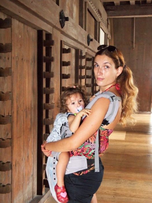 Las escaleras complican un poco la subida porteando a la bebé pero la bajada es mucho más complicada. Para la visita aconsejo 100% el porteo, es la única forma para poder visitarlo cómodamente aunque haya que ir con cuidado en las escaleras. Yo uso la mochila ergonómica de la marca ergobaby y nos encanta.