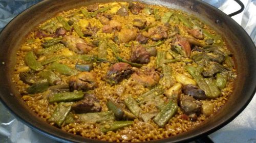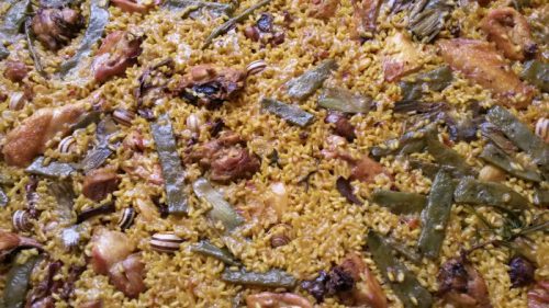 Comer una auténtica paella valenciana con pollo, conejo, bachoqueta, garrafón y caracoles