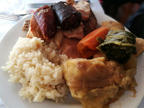 El cocido es extraño y parece que el olor a azufre se queda algo impregnado, pero está muy rico y la ración es abundante, verduras, carne y arroz cocido aparte, con un toque ahumado. Nosotros pedimos una ración de cocido y un plato de bacalao que no recomendamos para nada, estaba muy seco e insípido. Es un restaurante para ceñirse en pedir y probar su plato estrella. El precio total de los dos platos y las bebidas fue entre 25-30€