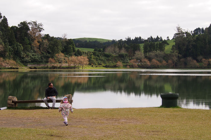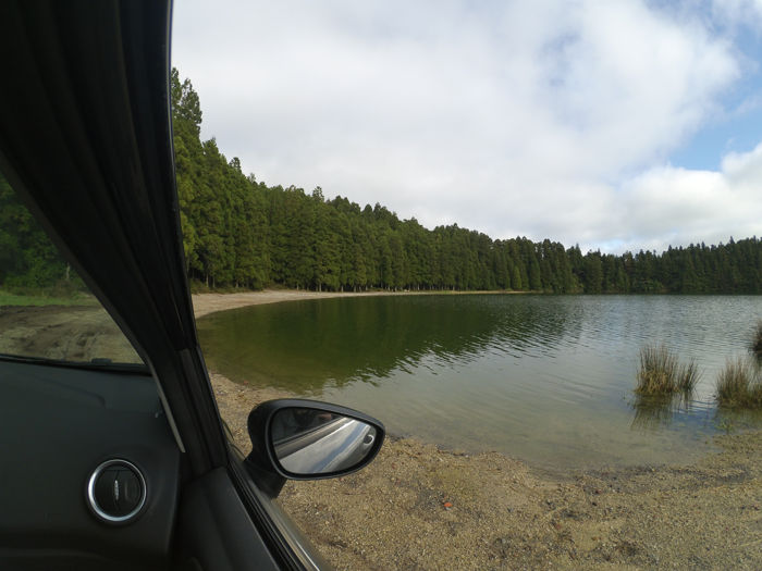 Después de desayunar cogimos el coche y nuestra primera parada fue Lagoa de Sao Bras. Este lago intentamos visitarlo el primer día pero nos fue imposible, se encontraba lleno de niebla y no se veía nada. Así que, como muchos otros lugares de la isla hay que darles una segunda oportunidad o incluso tercera para poder verlos, de lo contrario te tocará irte sin descubrirlos… Siguiente parada Lagoa das Furnas.
