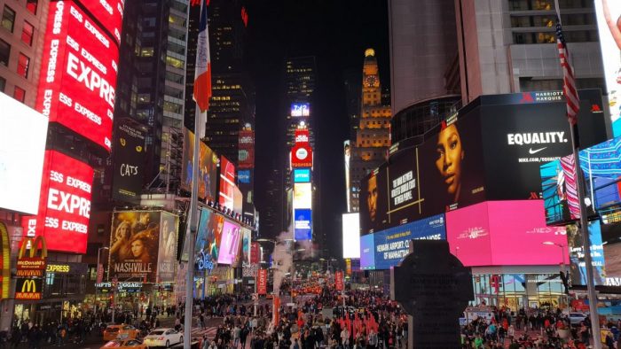 ¡Y por fin llegamos a Times Square! Impactan sus carteles publicitarios, sus luces… mezclado con el humo que se escapa del suelo y el jaleo de la gente, incluso sin ser de noche.